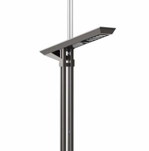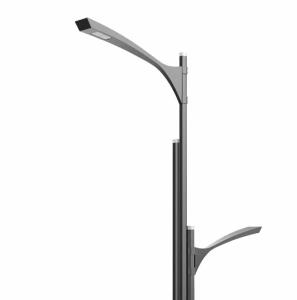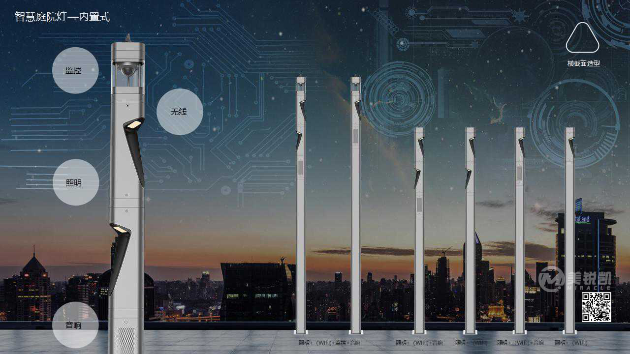 艾坦斯智慧灯杆由铝合金异形杆作为主杆,一杆集成路灯照明、城市监控、广告旗、显示屏、交通灯、功放音响、公共WIFI等各种功能。