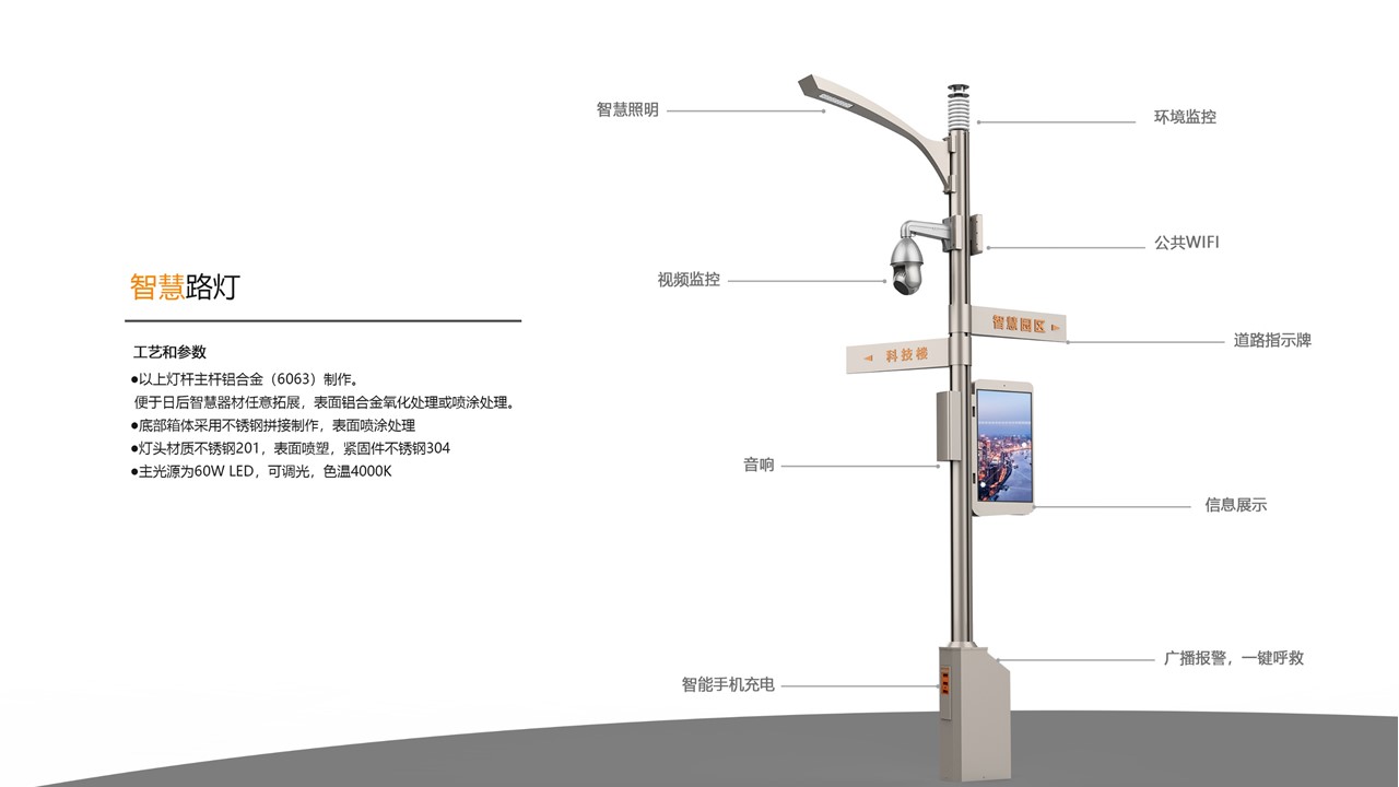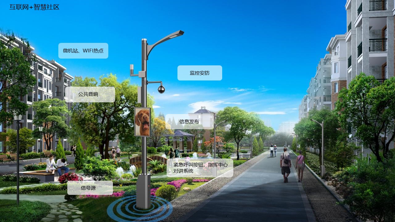 智慧路灯物联系统,以路灯为载体,通过电力线载波或ZigBee通信技术,将路灯智能控制系统与其他功能设备相连接,集照明控制、视频监控、环境检测、公安安防、信息发布、汽车充电、WIFI覆盖等功能与一体,借助于智慧路灯综合管理平台对以上各项功能进行监管,在有效节能的前提下,为创建智慧城市做好铺垫。